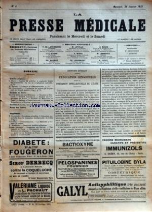 Download PRESSE MEDICALE (LA) [No 8] du 26/01/1921 PDF